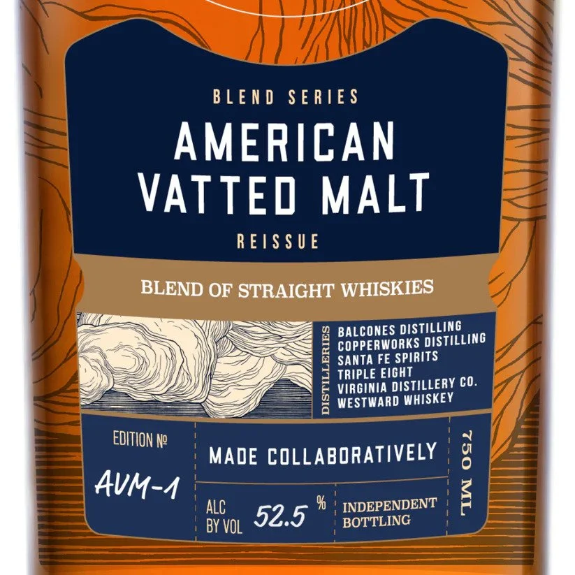The six original distilleries from American Vatted Malt Edition No. 1 are Balcones, Copperworks, Santa Fe Spirits, Triple Eight, Virginia Distillery Co., and Westward.